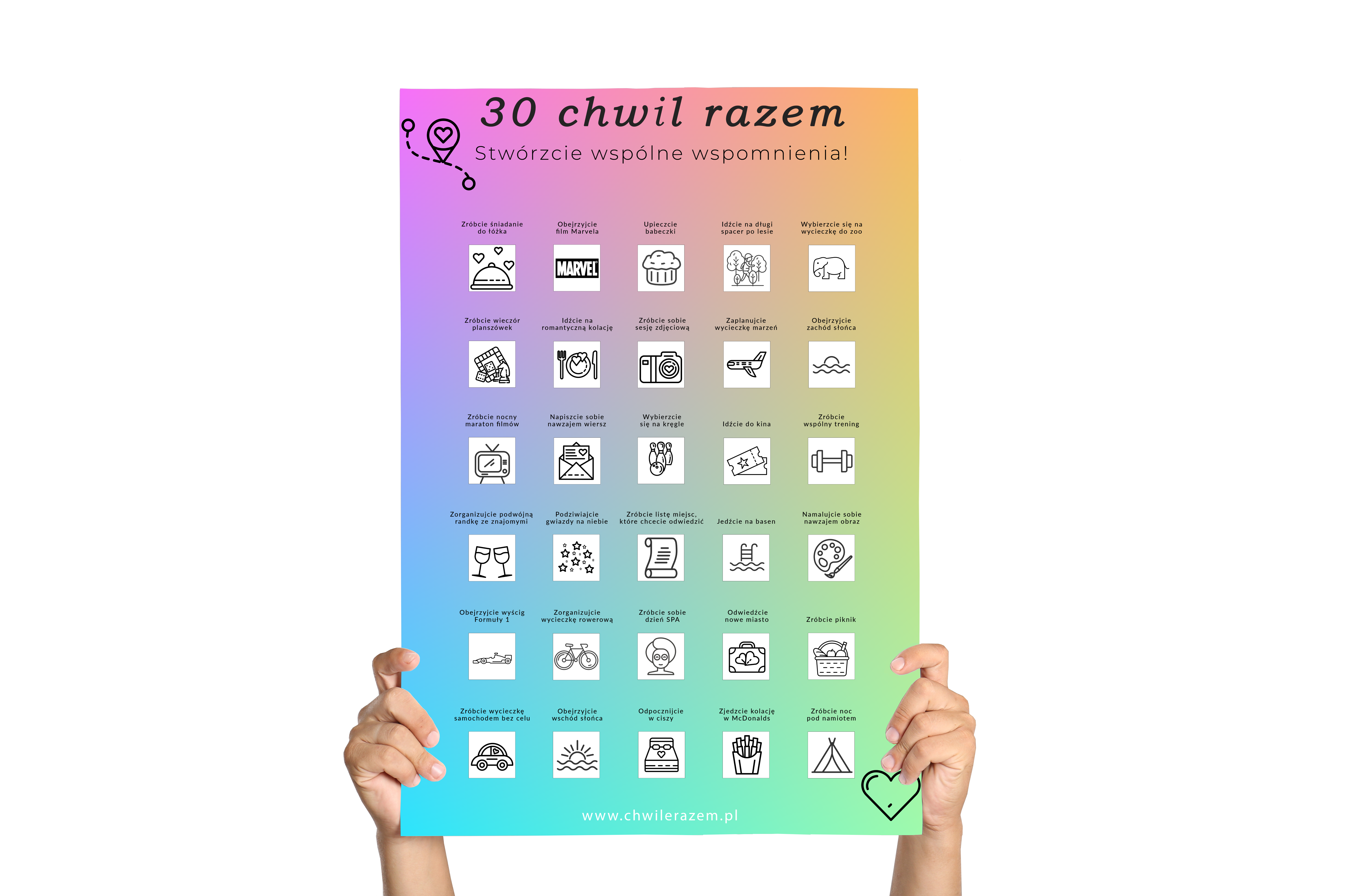 Plakat 30 chwil razem przeznaczony jest dla par. To idealny prezent na każdą okazję.