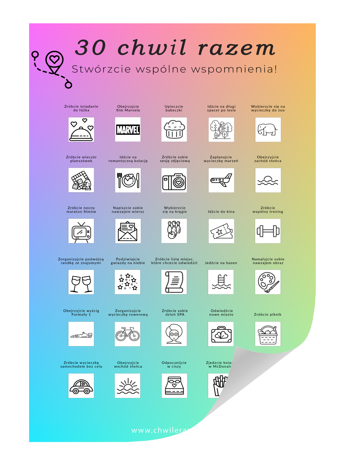 Przy pomocy plakatu możecie śledzić jakie chwile przeżyliście razem i co chcielibyście jeszcze wspólnie zrealizować.